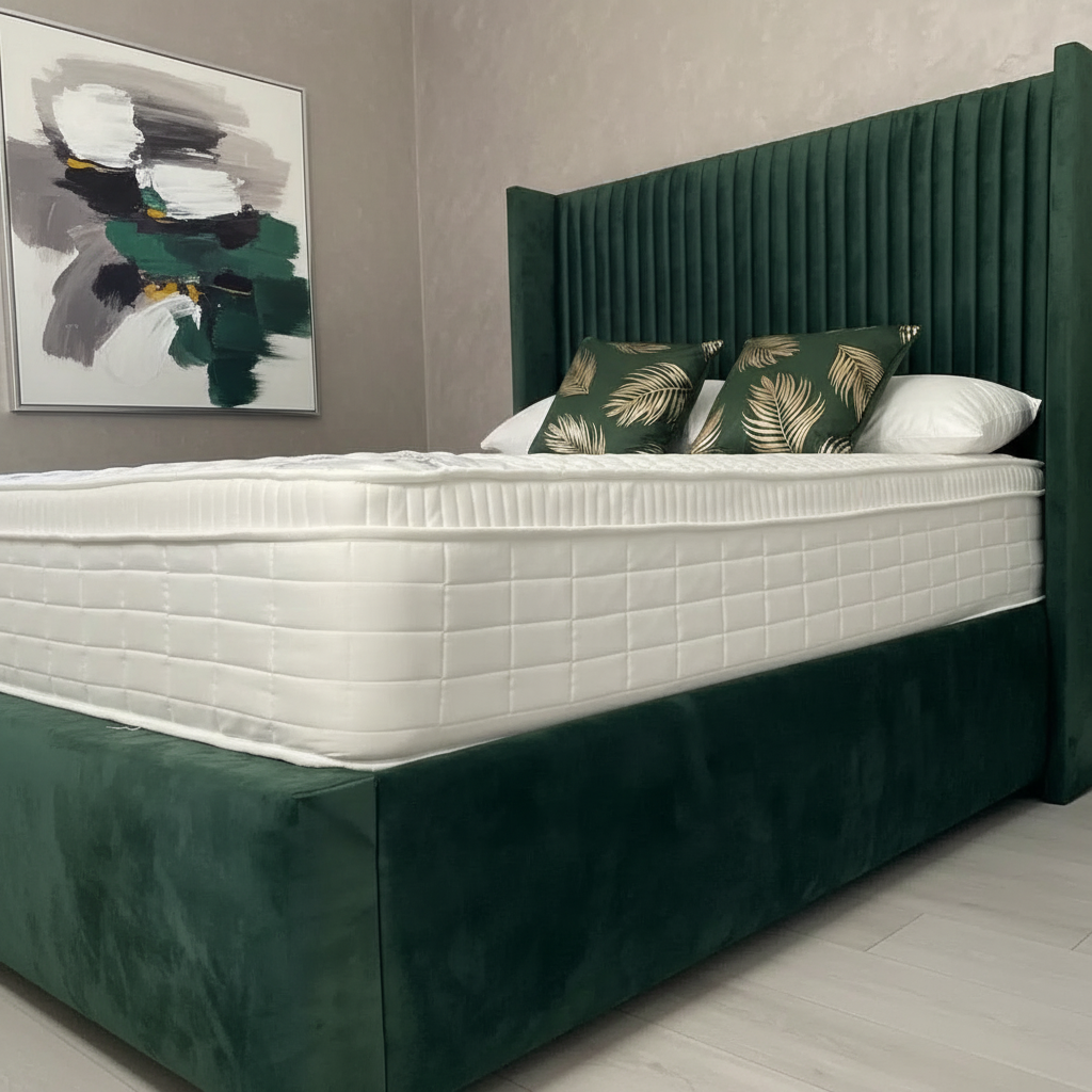 At Paradise Sleep, we believe your bedroom should be your sanctuary. The Franklin Bed captivates with its soaring winged headboard and floor-to-ceiling vertical channel detailing — ideal for those who want a rich, dramatic centrepiece that feels both powerfully luxurious and utterly unforgettable.